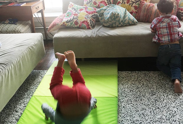 Set up an obstacle course or gym mats and let kids burn off some energy. Photo by Sara Marentette